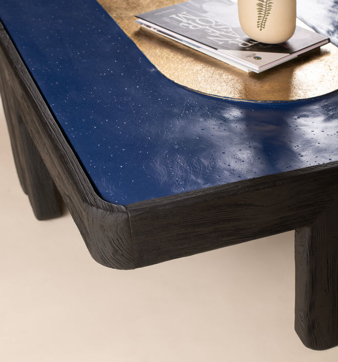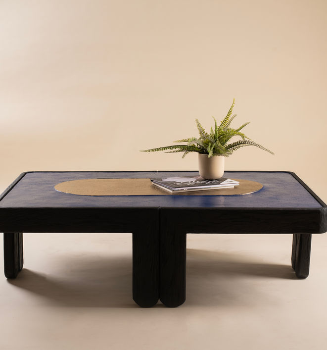 Materials Reclaimed Teak Wood - Black Stain, Open Cast Aluminium - Brass Platting , FRP + Granite Paste on Ply base.